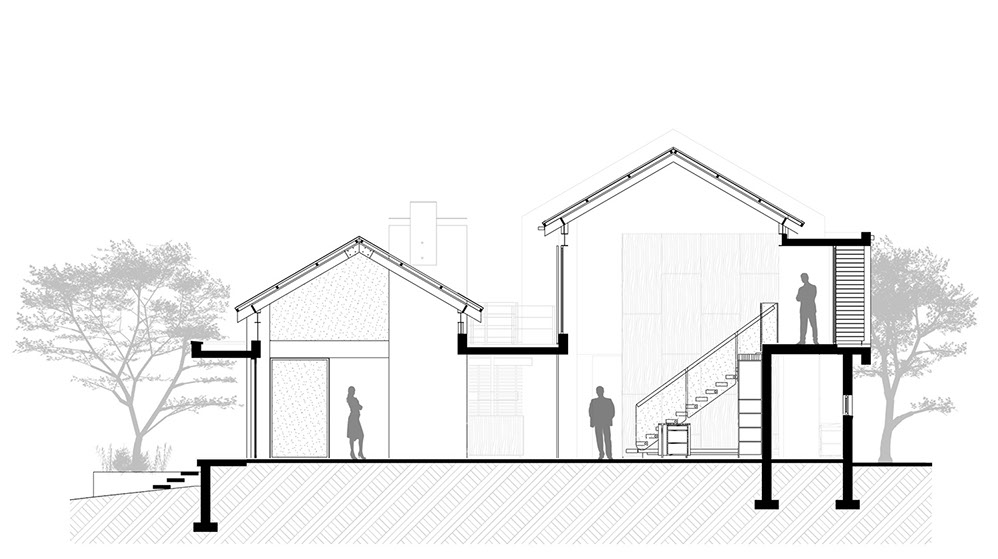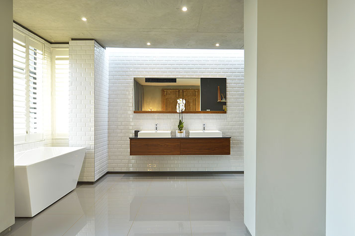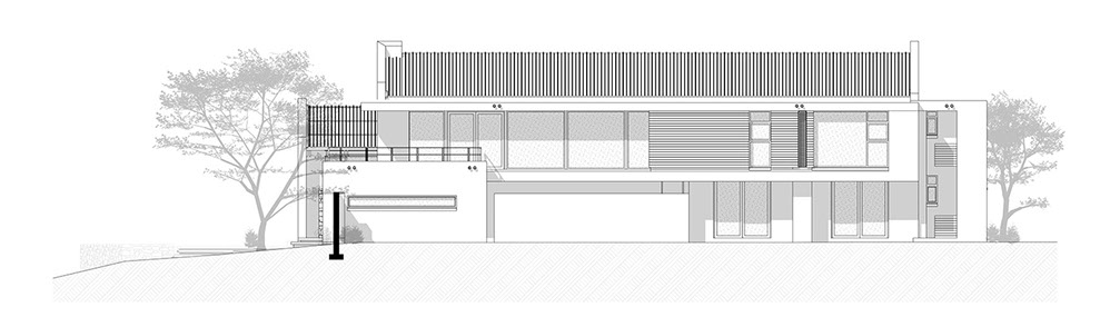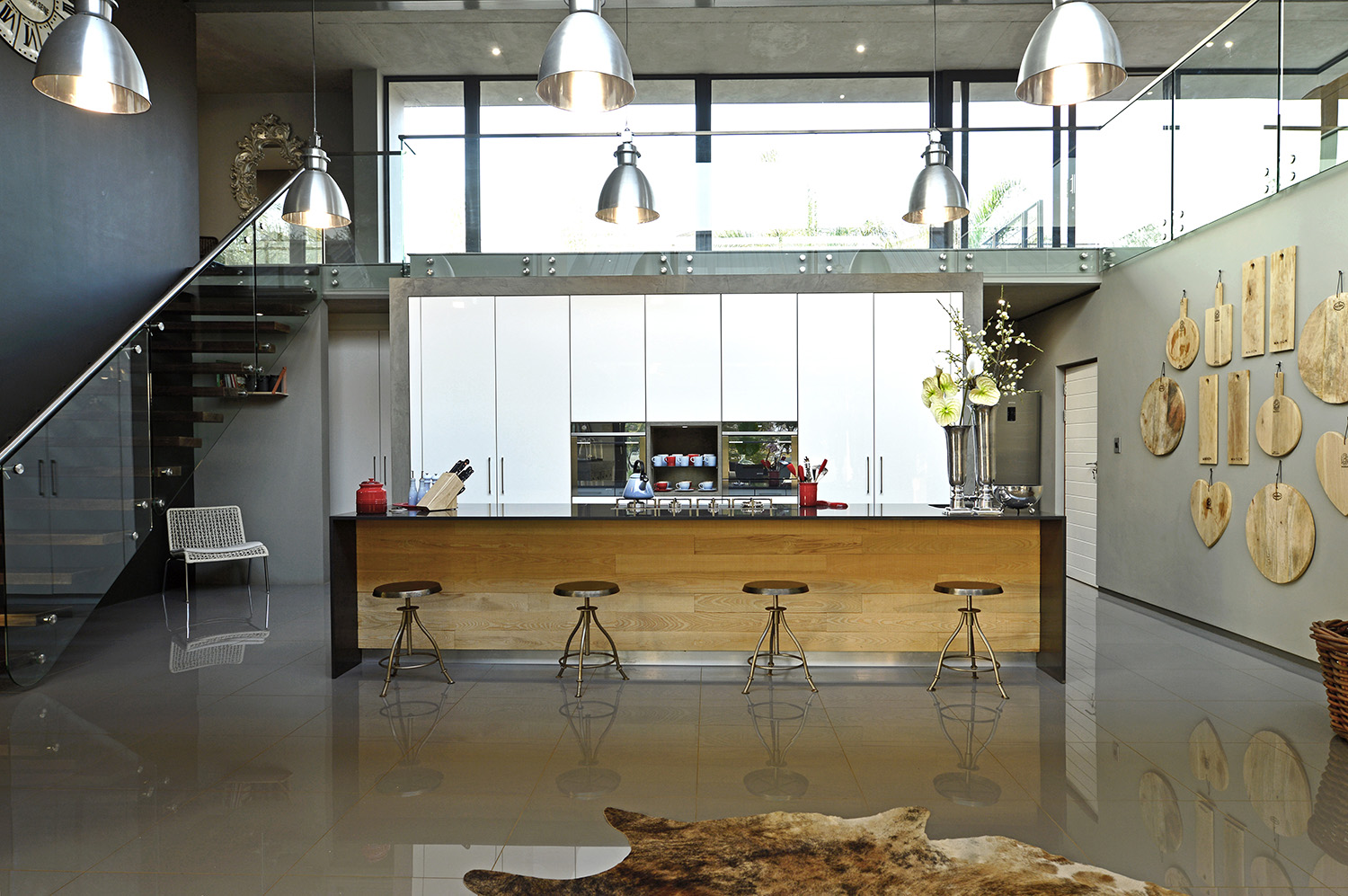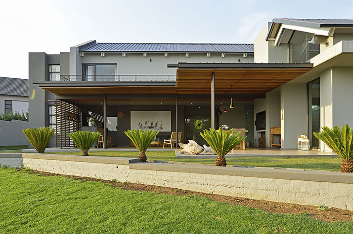With aesthetics and orientation being problematic the resulting tectonic came from a number of HOA meetings and counter arguments to eventually obtain approval on what is arguably a house totally out of context when compared to its neighbors and surrounding dwellings and rather a contemporary interpretation of Cape Dutch tectonics. The roofs are raised and detailed to float of the wall plate in order to create a feeling of lightness as well as to allow much needed northern light into the interior. The idea continues into a large double volume kitchen area featuring large window areas next to the first floor catwalk in order to bring light into the open plan interior.