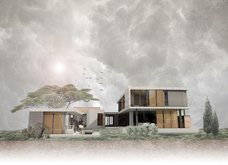 With the main view orientated South-West, the siting of the house proved challenging. All the main living areas as well as the bedrooms are orientated North-West to make the most of what the Highveld climate has to offer, whilst still retaining the view across the golf course. To protect the interior spaces from excessive heat-gain in the afternoons, large overhangs together with sliding steel and timber screens are employed. High performance glazing further enhance the interior climate of the house. The design also maximizes on outdoor living with an ample sized covered patio overlooking the adjacent wetland, connected to an al-fresco bar and pool house.