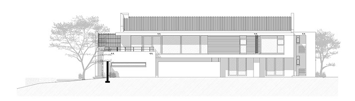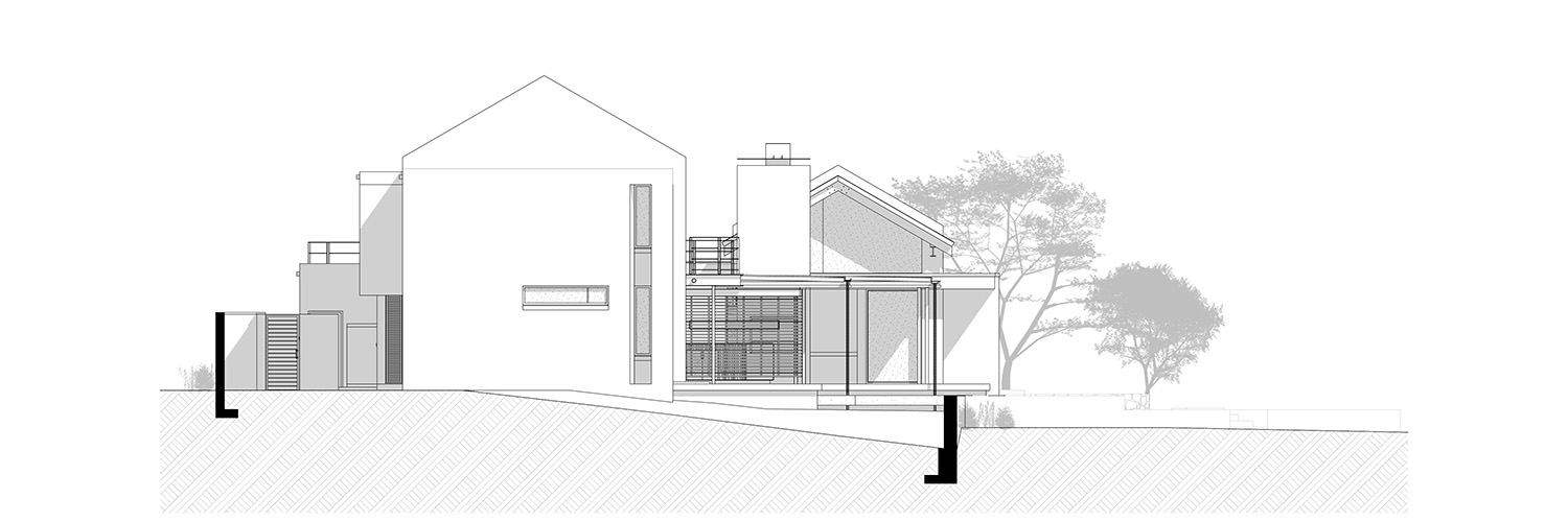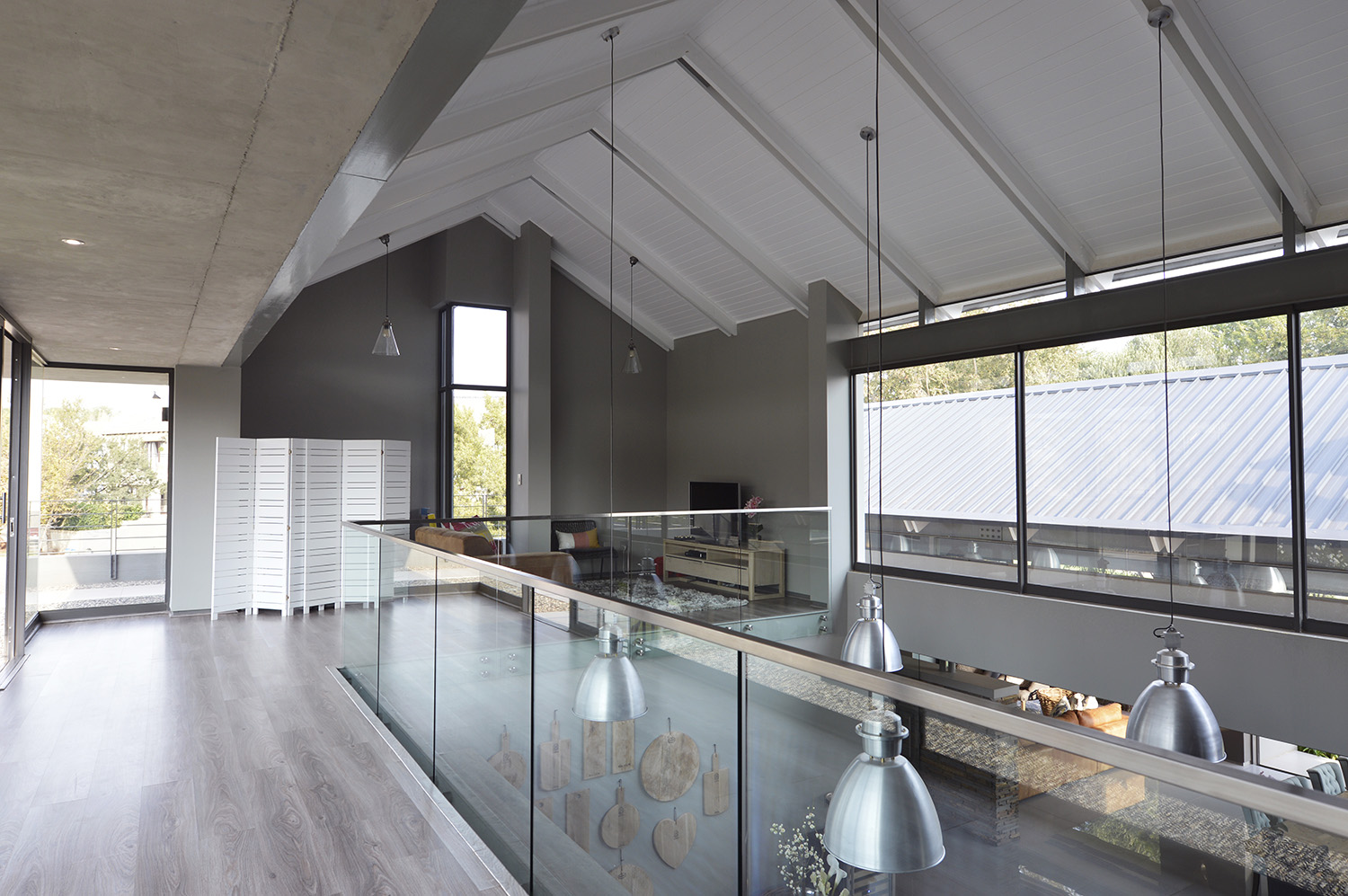With aesthetics and orientation being problematic the resulting tectonic came from a number of HOA meetings and counter arguments to eventually obtain approval on what is arguably a house totally out of context when compared to its neighbors and surrounding dwellings and rather a contemporary interpretation of Cape Dutch tectonics. The roofs are raised and detailed to float of the wall plate in order to create a feeling of lightness as well as to allow much needed northern light into the interior. The idea continues into a large double volume kitchen area featuring large window areas next to the first floor catwalk in order to bring light into the open plan interior.