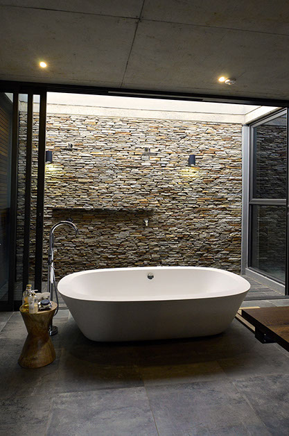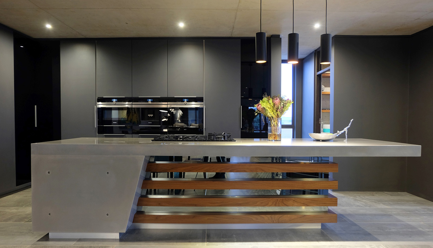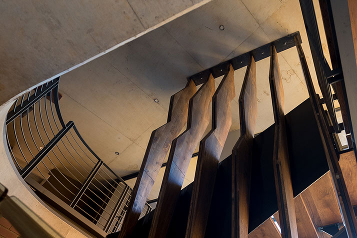 The upside down planning dynamic lead to the introduction of a secret loft room for the client’s young daughter and a large wine cellar and craft beer brewery area underneath the kitchen with a “secret passage” leading you down into what feels to be a deep and dark underground basement.The first floor patio, links with the pool deck area via a dramatic spiral staircase showcasing the opportunities of architectural drama that’s created with upside down living, similarly to the effect created with the wine cellar & bedroom loft.