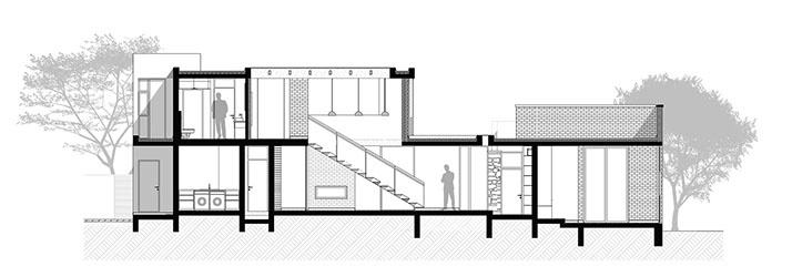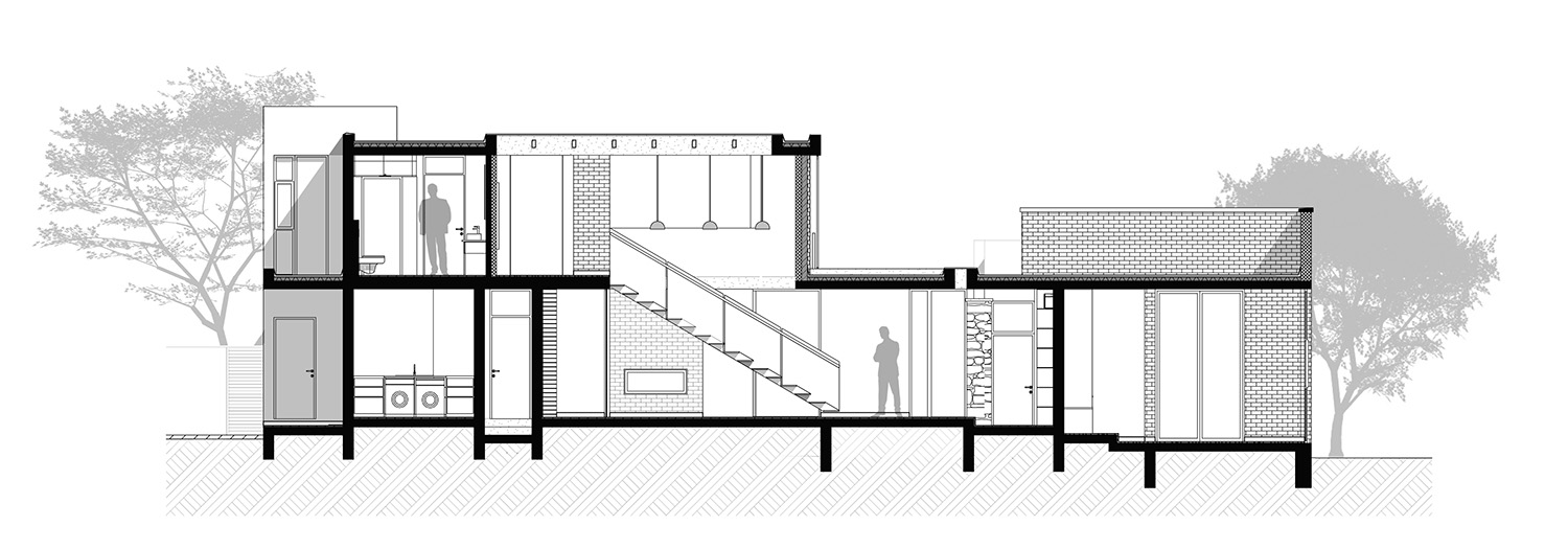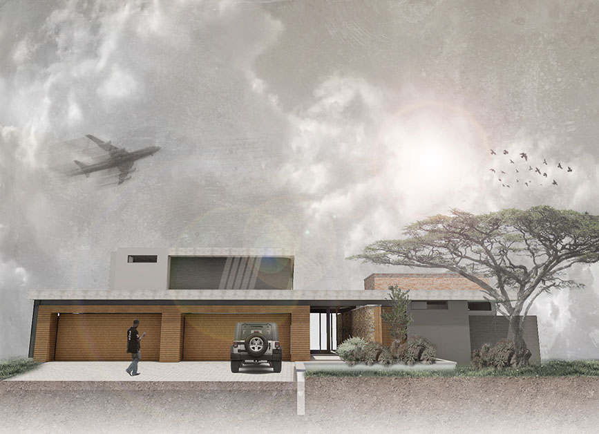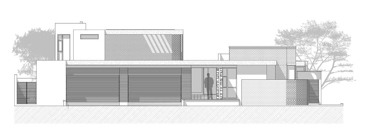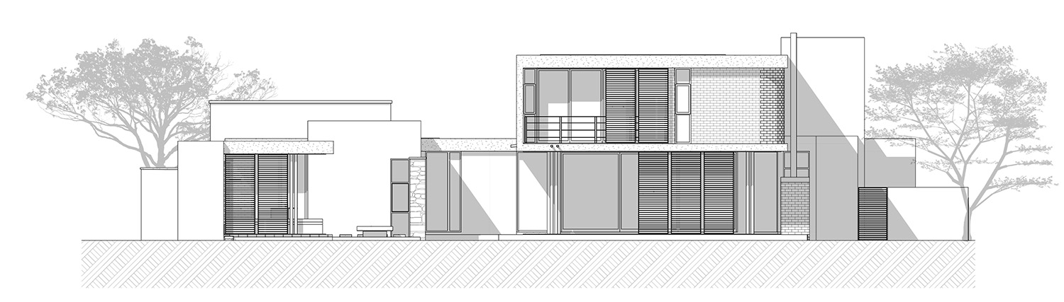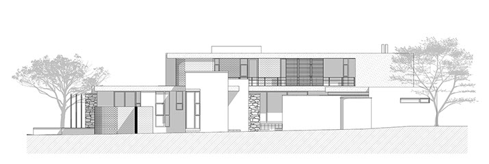Spatially, the architecture employs strong horizontal lines with strategically placed vertical elements to form a balanced composition. Connecting the interior and exterior was of cardinal importance and the design incorporates various skylights together with floor-to-ceiling glazing and sliding glass doors to facilitate a seamless flow of activities. Aesthetically we disposed of superficial ornamentation and instead engaged light and shadow together with the authentic use of raw, earthy materials to govern the spatial qualities of the home. The consistent use of timber, glass, steel, fair-face brickwork and off-shutter concrete, both inside and out, ensures that the textures and finishes form a unified whole - an understated, yet timeless back-drop to a relaxed, modern Highveld lifestyle.