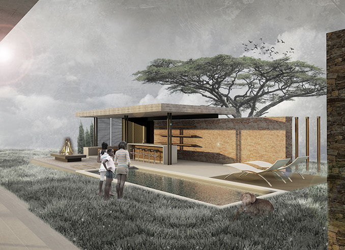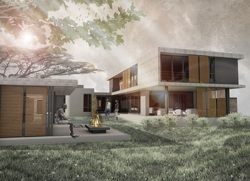 With the main view orientated South-West, the siting of the house proved challenging. All the main living areas as well as the bedrooms are orientated North-West to make the most of what the Highveld climate has to offer, whilst still retaining the view across the golf course. To protect the interior spaces from excessive heat-gain in the afternoons, large overhangs together with sliding steel and timber screens are employed. High performance glazing further enhance the interior climate of the house. The design also maximizes on outdoor living with an ample sized covered patio overlooking the adjacent wetland, connected to an al-fresco bar and pool house.